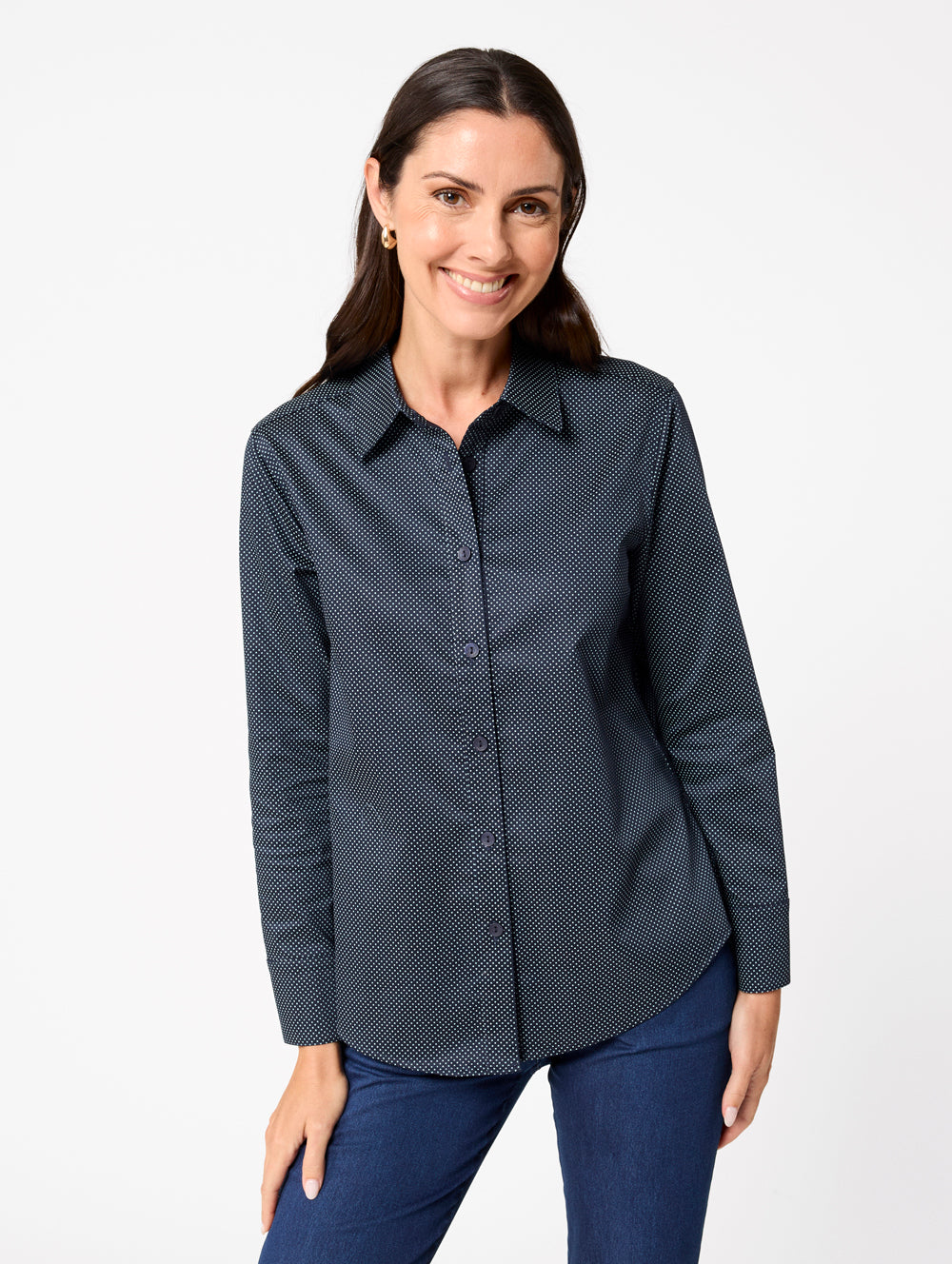 Introducing the Rivia Top, a blend of luxury and comfort. Made with 97% Polyester and 3% Spandex, this dressy casual top features an abstract pattern in blue and navy. The long sleeves and cross-over front V-neck add a sophisticated touch to this regular fit top. Elevate your style with the Rivia Top.What's My Size?